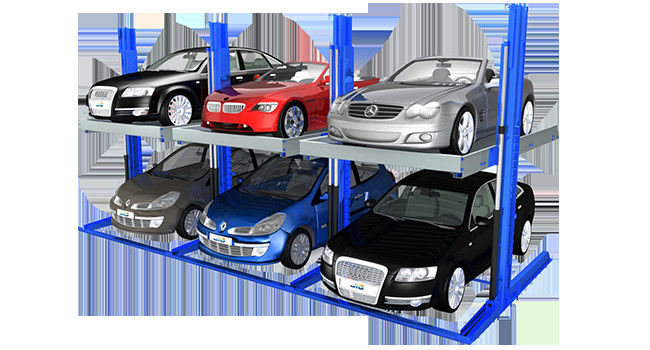 This parking lift has a total of two empty parking spaces. Lower vehicles can be in and out freejly, if you want to park the upper vehicles, the lower vehicles must be drive out first.